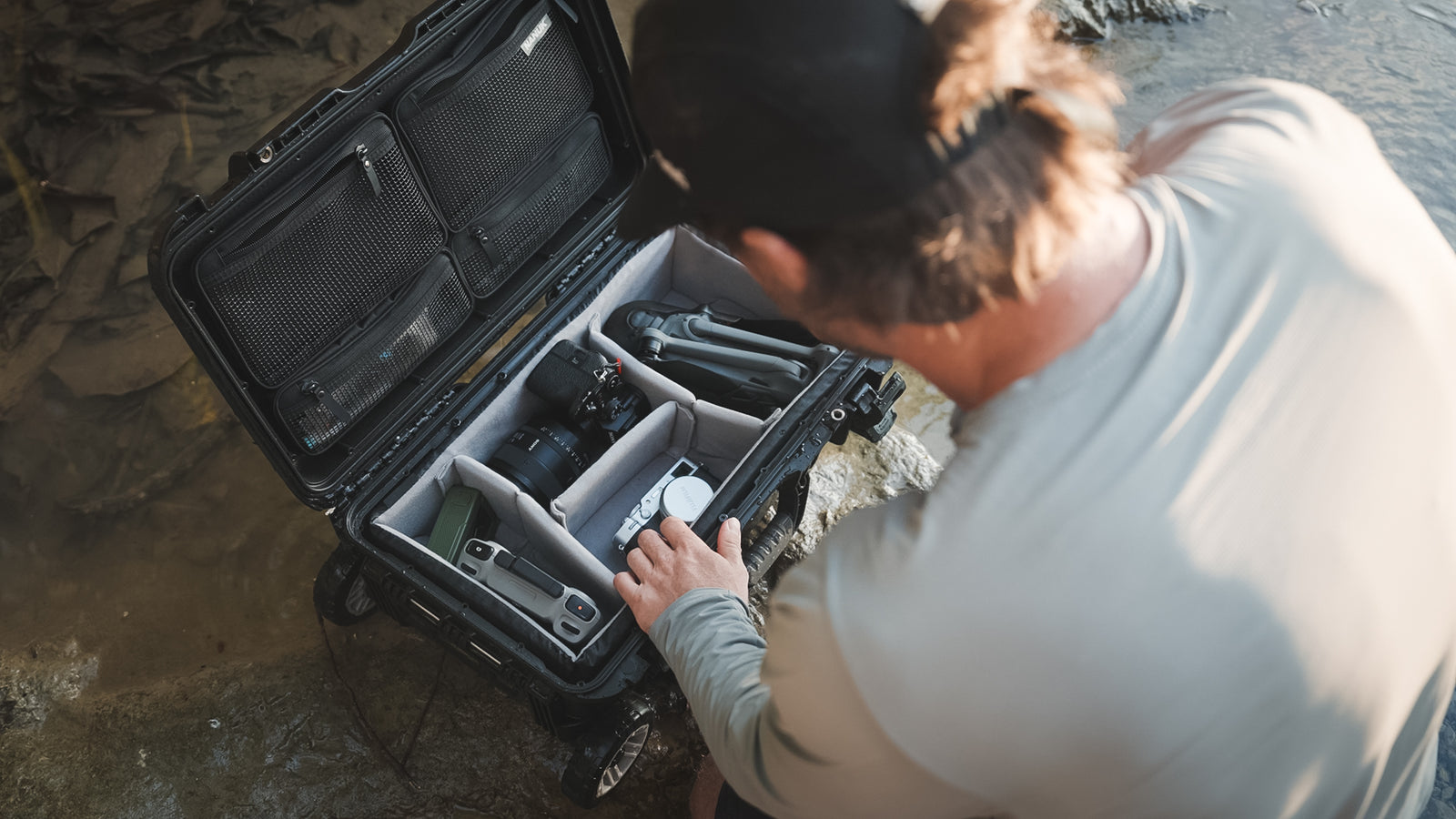À l'intérieur, un système de plateaux rigides, un séparateur mobile et un organisateur de couvercle en filet permettent de ranger judicieusement son matériel de cuisine, ses accessoires, ses outils de survie ou ses essentiels de premiers soins. Chaque fonctionnalité est conçue pour être facile d'utilisation et accessible rapidement, car en déplacement, le temps et l'espace comptent.